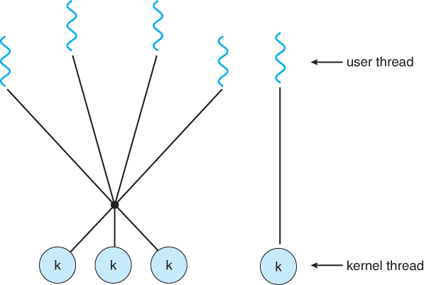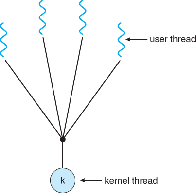 : 많은 수의 User Thread가 단일 Kernel Thread에 Mapping하는 방식.