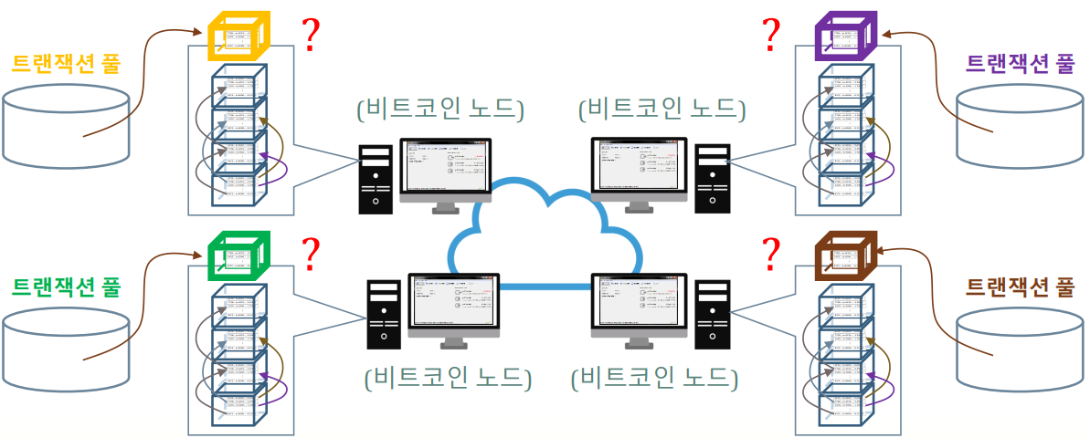 : 새로운 Block이 생성될 때 올리는 Block이 모두 다르기 때문에 이를 올리기 위해 경쟁하는 과정.